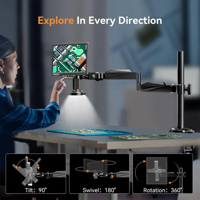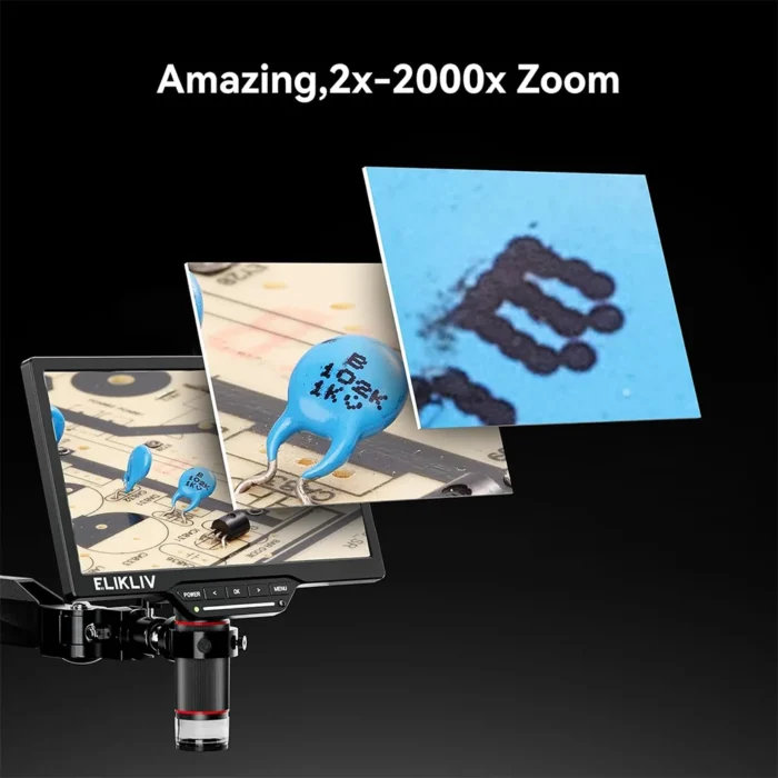 Elikliv EDM202 Joustava Digitaalimikroskooppi 2000X HDMI on erinomainen työkalu elektroniikan tarkastukseen ja korjaukseen, tarjoten jopa 2000-kertaisen suurennuksen. Tämä mikroskooppi on varustettu joustavalla varrella, joka mahdollistaa laitteen helpon sijoittamisen ja tarkan kohdistamisen kohteeseen. Suuri 10,1 tuuman HDMI-näyttö tarjoaa terävän ja selkeän kuvan, mikä tekee piirilevyjen ja muiden pienten komponenttien tarkastelusta helppoa ja tehokasta.
