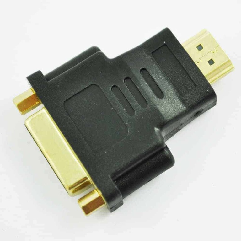 Kullattu sovitin, jolla voit muuttaa DVI-kaapelin toisen pään HDMI:ksi, tai toisinpäin.