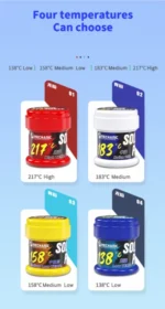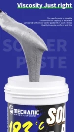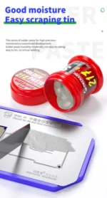 Lyijytön ja halogeeniton juotostahna ruiskupakkauksessa on erinomainen valinta ympäristötietoiselle elektroniikkakorjaajalle. Tämä juotostahna on suunniteltu erityisesti PCB (Printed Circuit Board), SMD (Surface-Mount Device), ja BGA (Ball Grid Array) piirikorttien korjauksiin. Sen koostumus on kehitetty siten, että se ei sisällä haitallisia aineita, kuten lyijyä tai halogeeneja, mikä tekee siitä turvallisemman vaihtoehdon sekä käyttäjälle että ympäristölle.