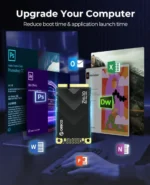 SSD käyttää SATA III 6Gbps -liitäntää, joka mahdollistaa jopa 550MB/s lukunopeuden ja 500MB/s kirjoitusnopeuden, kiihdyttäen merkittävästi käynnistysaikoja, tiedostojen siirtoja ja sovellusten latautumista. 3D NAND -teknologia takaa paremman suorituskyvyn, kestävyyden ja energiatehokkuuden verrattuna perinteisiin 2D NAND -ratkaisuihin.