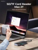 ORICO USB-C Hub & SSD-Telakka on monipuolinen ja tehokas ratkaisu nykyaikaisen työaseman tarpeisiin. Tämä laite tarjoaa nopean ja helpon yhteyden useisiin laitteisiin USB-C:n kautta ja sisältää integroidun SSD-kotelon, joka tukee sekä M.2 NVME että SATA SSD -levyjä jopa 8TB asti.