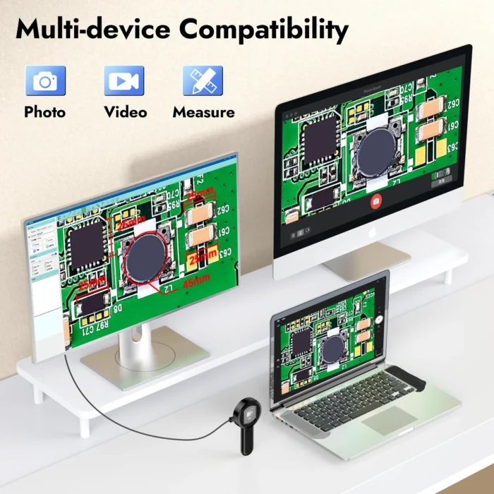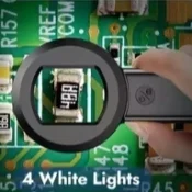 Works well on a flat surface. It is not suitable for viewing printed circuit board elements, especially when there are additional protruding parts, making it impossible to focus the image. Not all inscriptions on microcircuits can be read – only a black rectangle is visible! Be sure to place the microscope on the inspected surface, otherwise you won’t see anything. There is blue backlighting, not ultraviolet. You can check if the infrared LED works (for example, in the TV remote control). A toy for children. Maybe it will be so.