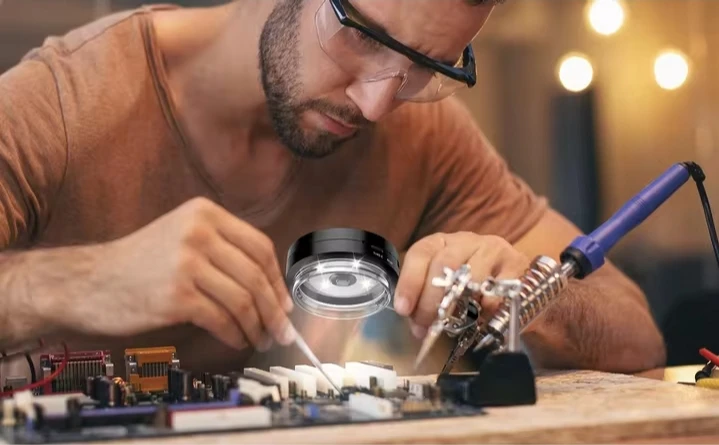 Voit tutkia kolikoita, lehtiä, kankaita, piirilevyjä ja muita pieniä esineitä tarkasti.