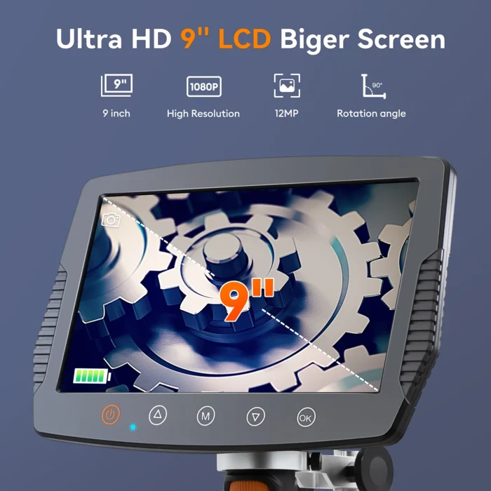 9 tuuman näyttö tarjoaa kirkkaan ja selkeän kuvan, mikä helpottaa yksityiskohtien näkemistä ilman tarpeetonta silmien rasitusta. Laite on suunniteltu käyttäjäystävälliseksi, ja sen intuitiiviset säätimet tekevät siitä helppokäyttöisen niin ammattilaisille kuin harrastajillekin.