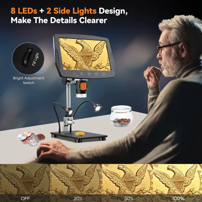 Tutustu uuteen 1500X digitaalimikroskooppiin, jossa on 9 tuuman LCD-näyttö ja 16MP mikrojuotosmikroskooppi. Tämä mikroskooppi tarjoaa huippuluokan suurennuskyvyt ja tarkan kuvanlaadun, mikä tekee siitä ihanteellisen valinnan aikuisille, jotka ovat kiinnostuneita kolikoiden tutkimisesta, mikrojuotostöistä tai muista tarkkuutta vaativista tehtävistä.