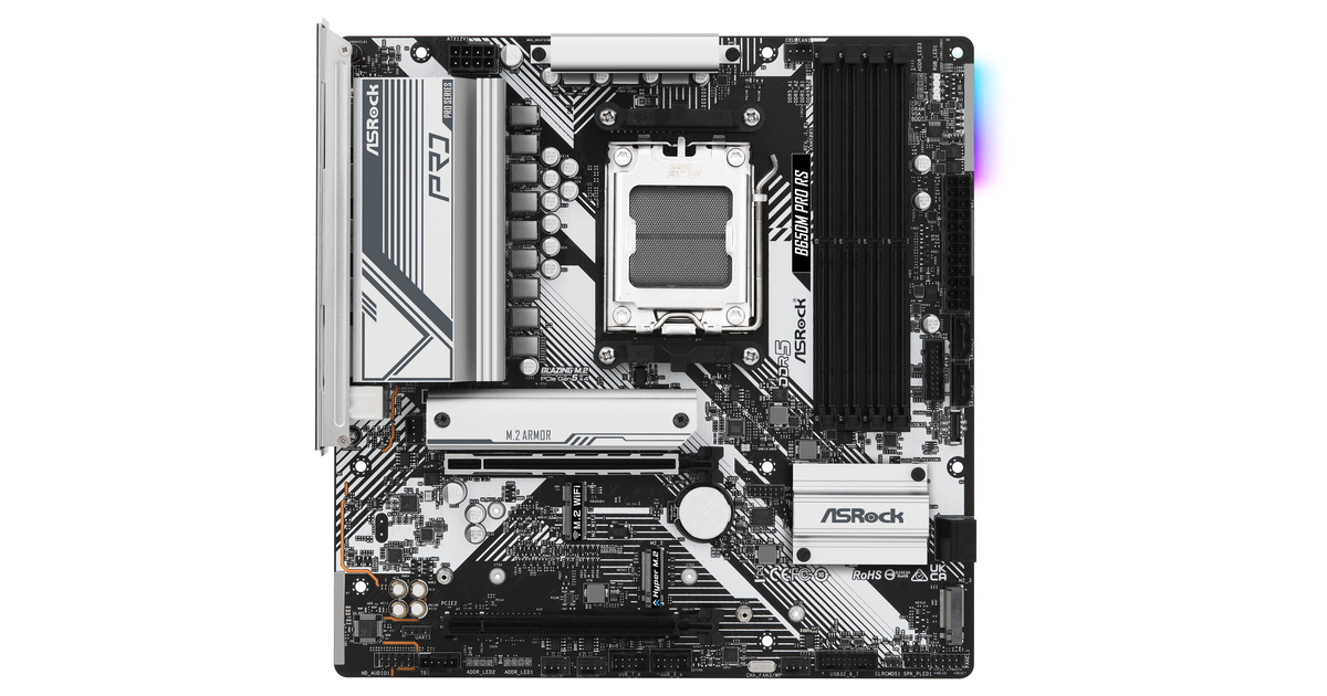 Tallennustilaa varten ASRock B650M Pro RS sisältää kolme M.2-paikkaa (yksi PCIe Gen5 x4, yksi Gen4 x4 ja yksi Gen4 x2) sekä neljä SATA III -liitäntää, jotka tukevat RAID 0/1/10 -konfiguraatioita. Verkkoyhteydet hoituvat nopean 2.5G LAN -liitännän (RTL8125BG) kautta, ja äänenlaadusta vastaa Realtek ALC897 8-kanavainen äänipiiri.