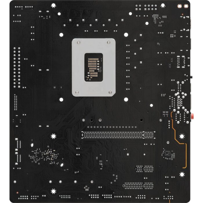 Liitännät sisältävät USB 3.2 -portteja, HDMI- ja audio-ulostuloja, mikä takaa monipuoliset liitännät eri laitteille. Emolevyn musta ja hopea väri tekee siitä tyylikkään lisän mihin tahansa tietokonekokoonpanoon.