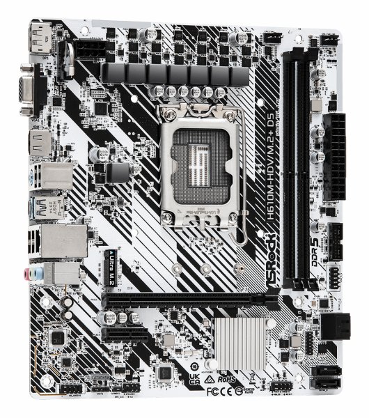 ASRock H610M-HDV/M.2+ D5 on tehokas ja monipuolinen emolevy, joka on suunniteltu Intelin 12. sukupolven prosessoreille, käyttäen LGA 1700 -kantaa. Tämä µATX-muototekijän emolevy tarjoaa erinomaisen suorituskyvyn ja laajennettavuuden.