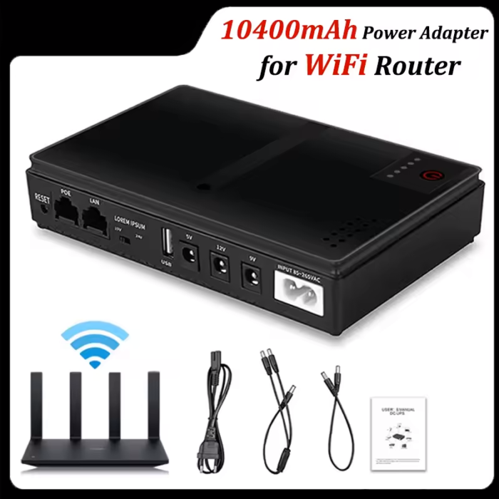 Tämä tehokas ja kompakti UPS-varavirta-adapteri on suunniteltu tarjoamaan luotettavaa ja jatkuvaa virtaa WiFi-reitittimille ja muille laitteille sähkökatkoksen aikana. Sen suuri 10400mAh akkukapasiteetti varmistaa, että laitteesi pysyvät toiminnassa tärkeillä hetkillä, olipa kyseessä työ, viestintä tai viihde.