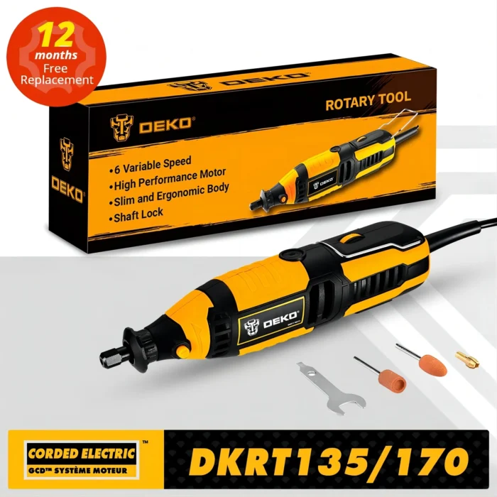 DEKO DKRT135ST 220V AC sähköporakone on monipuolinen työkalu, joka soveltuu erinomaisesti hiomiseen, leikkaamiseen, hiontaan ja puun kaivertamiseen. Tämä minikokoinen jyrsinkone tarjoaa säädettävän nopeuden, mikä mahdollistaa tarkan ja hallitun työskentelyn erilaisissa projekteissa. Koneen tehokas 220V AC moottori varmistaa, että työ sujuu vaivattomasti ja tehokkaasti.