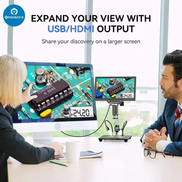 DM201M 1080P digitaalimikroskooppi tarjoaa huipputeknologiaa ja monipuolisuutta elektroniikan korjaukseen ja tarkasteluun. Tämä mikroskooppi tukee jopa 1200x suurennusta, mikä mahdollistaa erittäin tarkkojen yksityiskohtien näkemisen ja selkeän kuvanlaadun. Täysi HD 1080P -resoluutio takaa terävät kuvat, ja HDMI- ja USB-portit tarjoavat joustavat liitännät erilaisiin laitteisiin.