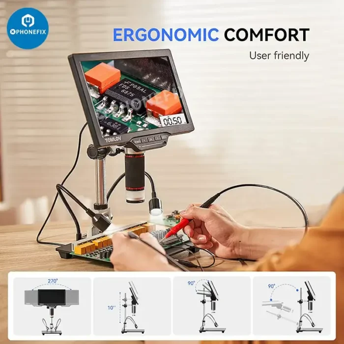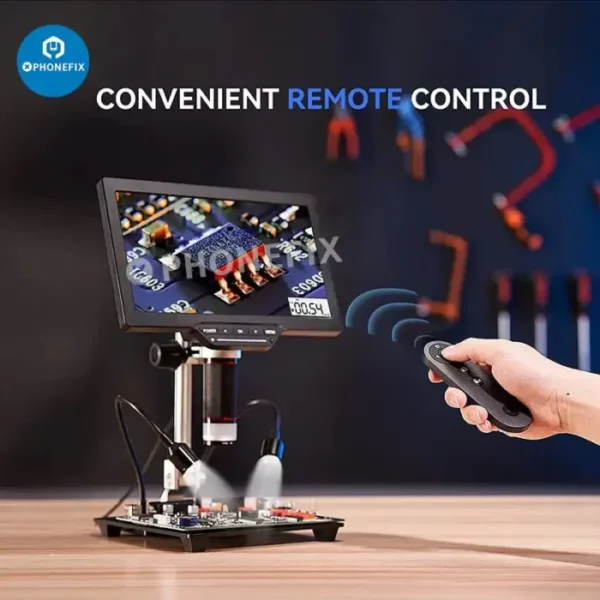 Mikroskoopin integroitu LED-valaistus varmistaa, että kohteet ovat kirkkaasti valaistuja, parantaen näkyvyyttä ja tarkkuutta työskenneltäessä pienten komponenttien kanssa. Lisäksi laitteessa on sisäänrakennettu monimittari, joka tekee sähkömittausten suorittamisesta helppoa ja tarkkaa, mikä on erityisen hyödyllistä puhelinkorjauksissa.