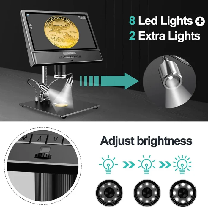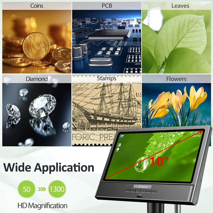 Elikliv EDM12 10 tuuman digitaalimikroskooppi tarjoaa tarkkuutta ja monipuolisuutta vaativiin sovelluksiin, olipa kyseessä juottaminen, mikrokomponenttien tarkastus tai harrastuskäyttö. Tämä mikroskooppi yhdistää 1300x suurennuksen, terävän 12 megapikselin kameran ja 1080P-videotallennuksen, joten se tallentaa yksityiskohtaisia kuvia ja videoita selkeydellä ja tarkkuudella.