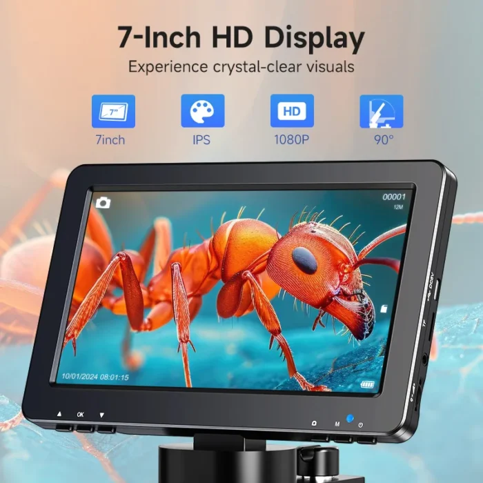 DM9-mikroskoopin suuri 7 tuuman näyttö mahdollistaa kuvien ja videoiden katselun reaaliajassa ilman pieniä okulaareja, mikä tekee käytöstä mukavampaa ja vähentää silmien rasitusta. Laitteen yhteensopivuus sekä Windowsin että Mac OS:n kanssa tekee siitä monipuolisen työkalun harrastajille ja ammattilaisille.
