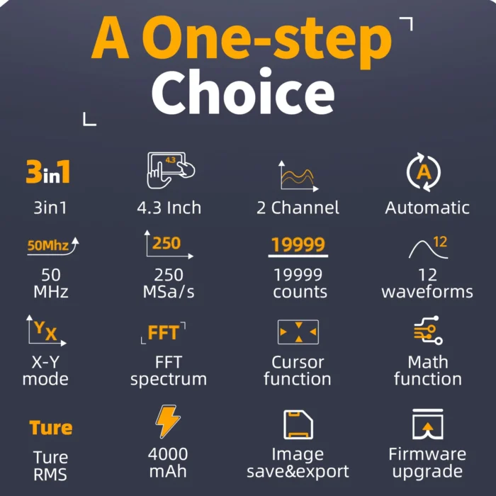 FNIRSI 2C53P on digitaalinen kosketusnäyttö-oskilloskooppi, joka yhdistää kolme tärkeää toimintoa yhdessä laitteessa: oskilloskoopin, monimittarin ja signaaligeneraattorin. Tämä monipuolinen laite tarjoaa kaksi kanavaa ja jopa 50 MHz taajuuskaistan, mikä tekee siitä erinomaisen työkalun elektroniikan testaamiseen ja vianmääritykseen.