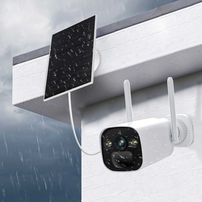 Kamera on saatavilla tyylikkäänä valkoisena tai mustana, ja se sopii täydellisesti erilaisiin ympäristöihin. Pakkaus sisältää myös 5W aurinkopaneelin, joka mahdollistaa energiatehokkaan käytön ilman jatkuvaa sähköliitäntää.