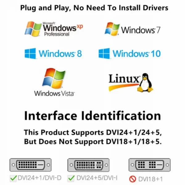 Paranna näyttökokemustasi Grwibeou DVI-D (24+1) – VGA -sovitinkaapelilla, joka mahdollistaa korkearesoluutioisten VGA-näyttöjen liittämisen laitteisiin, jotka tukevat DVI-D-lähtöä. Tämä sovitin on ihanteellinen ratkaisu toimistoihin, kotiviihdejärjestelmiin ja konferenssihuoneisiin, tarjoten selkeän ja tarkan kuvanlaadun jopa 1920 x 1200 PC-grafiikassa tai 1080p-resoluutiossa.
