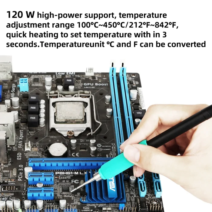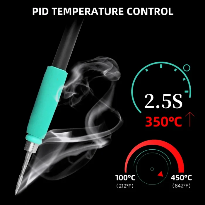 – Ergonominen kahva: Suunniteltu mukavuutta ja pitkäaikaista käyttöä silmällä pitäen, vähentäen käden väsymistä pitkissä juotostöissä.