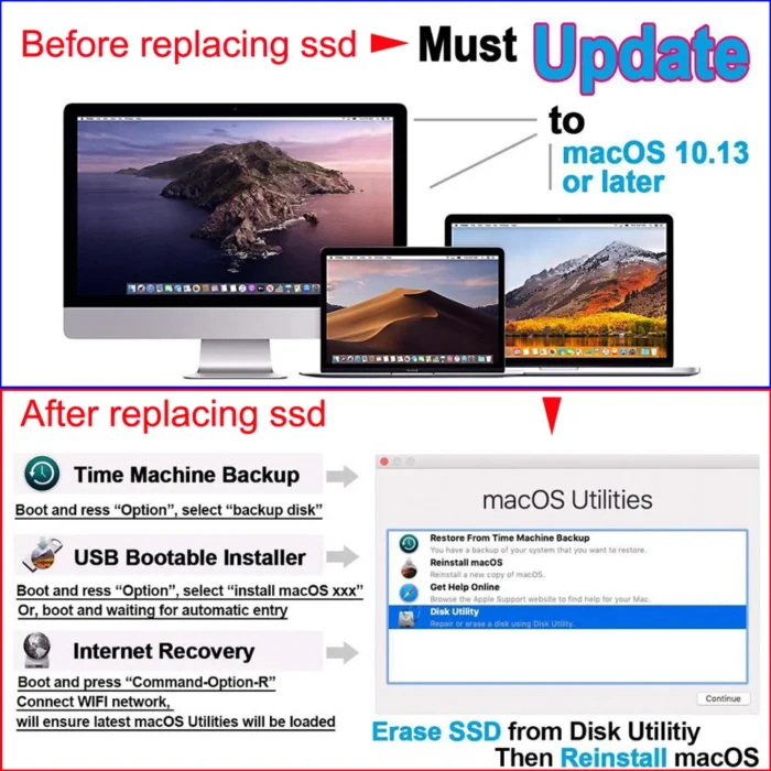 KingSpec M2 PCIe NVME SSD on suunniteltu erityisesti vuosien 2013-2015 MacBook Pro Retina (A1502 ja A1398), MacBook Air (A1465 ja A1466) sekä iMac A1419 -malleihin. Tämä SSD tarjoaa huippunopeaa tallennustilaa, joka on saatavilla kolmessa eri kokovaihtoehdossa: 256GB, 512GB ja 1TB.