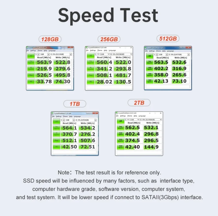 480GB, 512GB, 960GB, 1TB, 2TB |