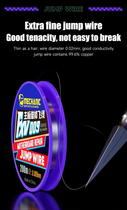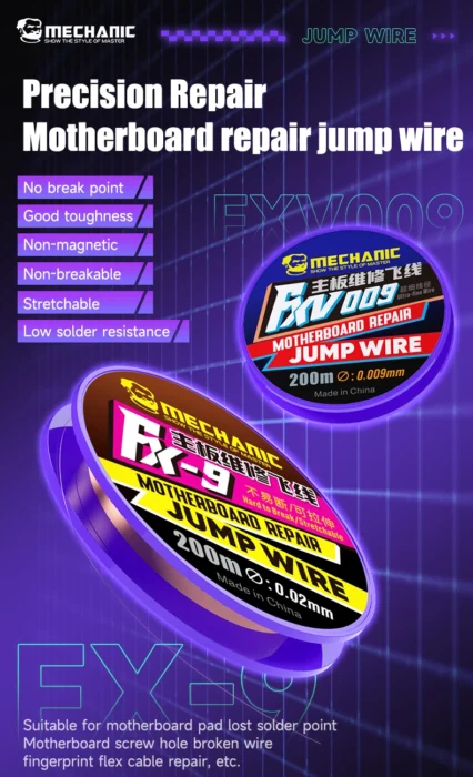 Tutustu MECHANIC FX-9 / FXV009 -korjauslankaan, joka on suunniteltu erityisesti puhelinten CPU:iden ja piirilevyjen korjaamiseen. Tämä korkealaatuinen korjauslanka on välttämätön työkalu kaikille elektroniikan korjausammattilaisille ja harrastajille, jotka työskentelevät herkkien komponenttien parissa.