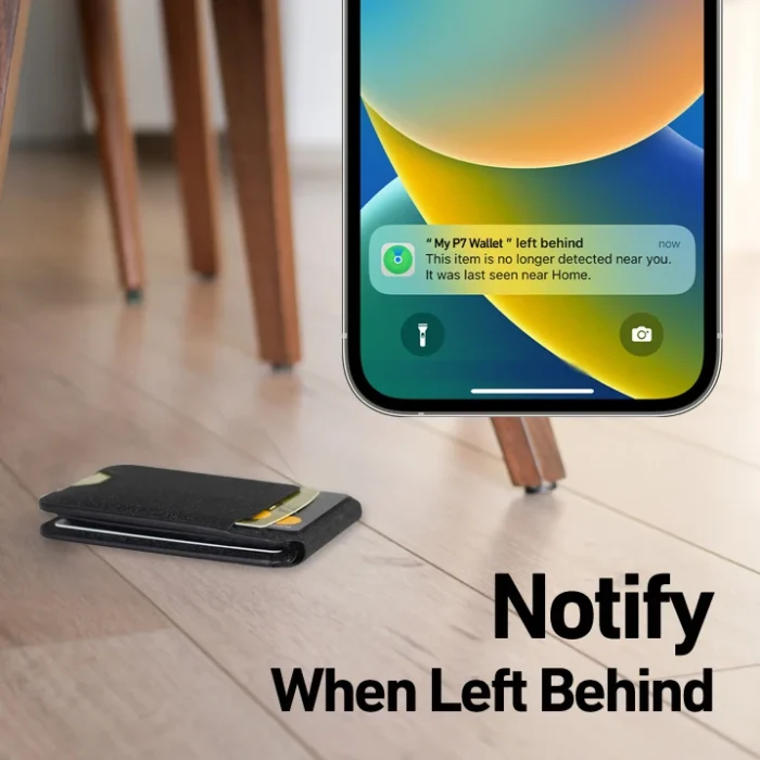 2. Find My Wallet -paikannin: Unohda lompakon etsimisestä aiheutuva stressi. Integroitu paikannin mahdollistaa lompakkosi nopean löytämisen käyttämällä iPhoneesi “Find My” -sovellusta.