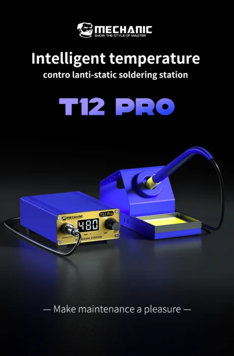 MECHANIC T12 Pro älykäs juotosasema tarjoaa huippuluokan suorituskykyä ja tarkkuutta juottamiseen. Tämä säädettävällä lämpötilalla varustettu juotoskolvi on suunniteltu sekä ammattilaisten että harrastajien tarpeisiin. Eipea lämmitysominaisuus mahdollistaa työskentelyn aloittamisen vain sekunneissa, ja digitaalinen näyttö tarjoaa tarkan lämpötilan seurannan reaaliajassa.