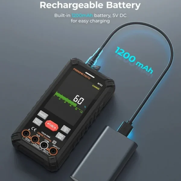 MT03 älykäs ladattava digitaalinen yleismittari tarjoaa erinomaista vastinetta rahalle sekä ammatti- että harrastuskäytössä, yhdistäen edistyneet ominaisuudet, kestävyyden ja käyttäjäystävällisyyden. Se on ihanteellinen valinta kenelle tahansa, joka tarvitsee luotettavan ja tarkan mittarin elektronisten järjestelmien testaamiseen ja vianmääritykseen.