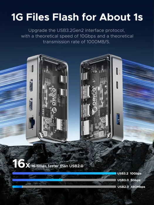 Lisäksi ORICO TM10 sisältää RJ45-portin, joka tarjoaa vakaa ja nopea verkkoyhteys, olennainen ominaisuus etätyössä ja suurten tiedostojen lataamisessa. Tämä telakointiasema ei ainoastaan laajenna MacBook Pron tai muiden yhteensopivien kannettavien liitäntämahdollisuuksia, vaan myös parantaa käyttökokemusta monipuolistamalla käyttömahdollisuuksia ja tehostamalla työnkulkua.