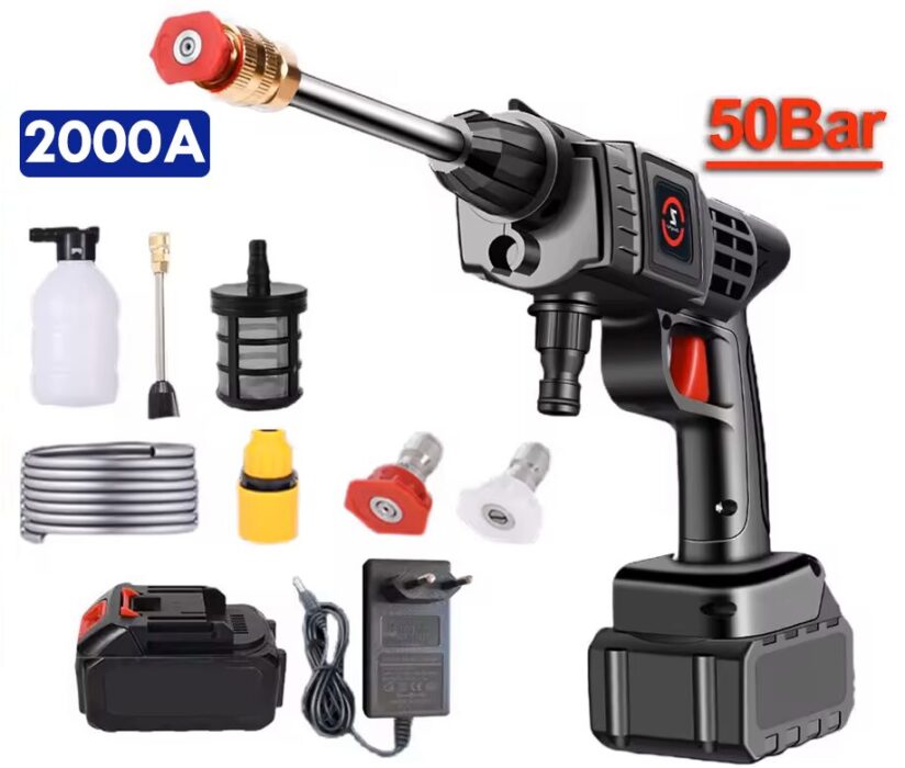 Tutustu tehokkaaseen ja langattomaan 50Bar 200W korkeapainepesuriin, joka on suunniteltu monipuoliseen käyttöön niin autojen, puutarhan kuin kodinkin puhdistukseen. Tämä korkeapainepistooli hyödyntää 20000mAh:n akkua, tarjoten pitkäkestoista suorituskykyä ilman sotkeutuvia johtoja.