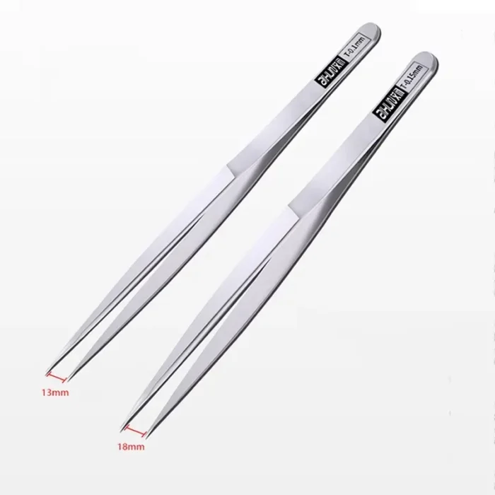 Aixun IC-piirilevyjen korjauspinsetit 0.1mm/0.15mm ovat erinomainen työkalu kaikille elektroniikan korjaajille ja harrastajille. Nämä pinsetit on suunniteltu erityisesti äärimmäisen tarkkoihin tehtäviin, kuten IC-komponenttien käsittelyyn, emolevyjen korjauksiin ja tinaukseen.