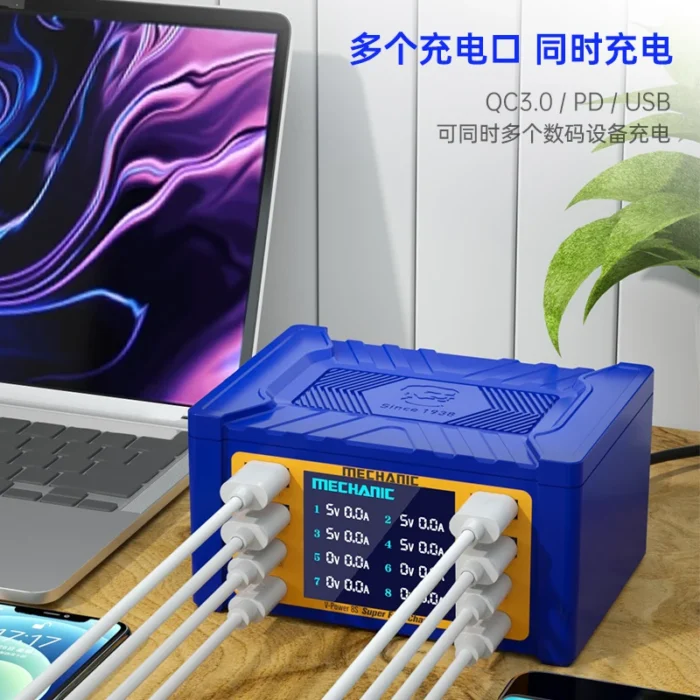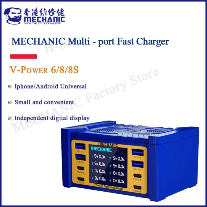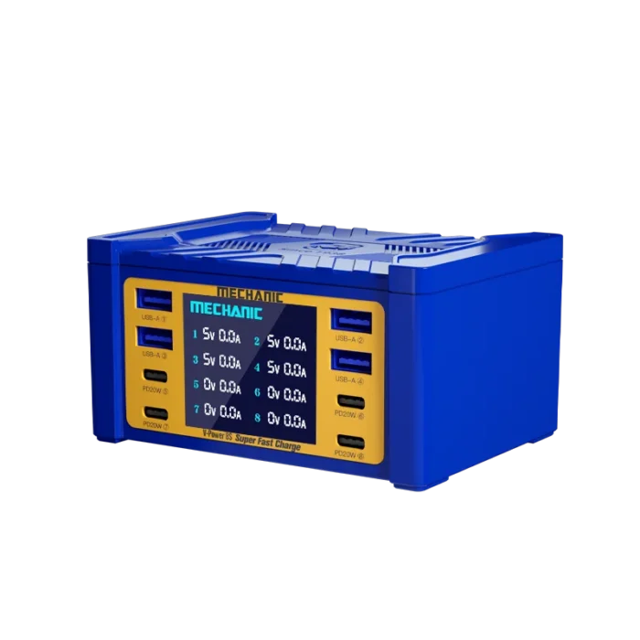 Tutustu Mechanic V-power 6/8/8S -superlaturiin, joka tarjoaa huippunopean latauksen kaikille laitteillesi! Tämä monipuolinen laturi on suunniteltu vastaamaan nykyaikaisten laitteiden vaatimuksia, tarjoten jopa 115W tehoa, joka varmistaa, että iPadisi, älypuhelimesi ja älykellot latautuvat nopeammin kuin koskaan.