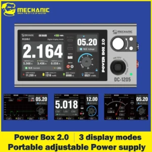 MECHANIC POWER BOX2.0 on monipuolinen ja säädettävä kannettava virtalähde ja testeri, joka on suunniteltu erityisesti puhelinkorjauksiin. Tämä laite mahdollistaa tarkan virran ja jännitteen havaitsemisen, mikä tekee siitä välttämättömän työkalun mobiililaitteiden ylläpitoon ja korjaukseen.
