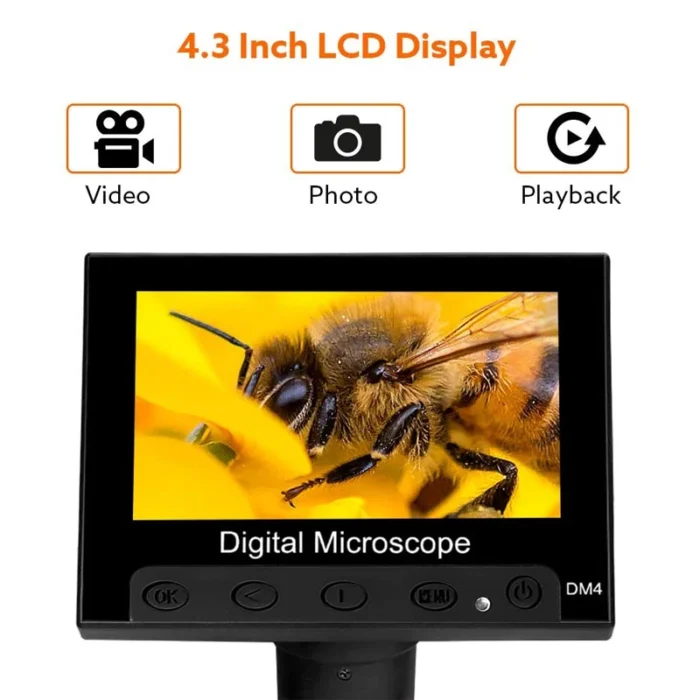 Tutki maailmaa mikroskooppisella tasolla RIEVBCAU digitaalimikroskoopin avulla, joka tarjoaa tarkan ja terävän kuvanlaadun. Tämä mikroskooppi on varustettu 4,3 tuuman LCD-näytöllä, joka näyttää selkeät 1080P HD-kuvat ja -videot, mahdollistaen yksityiskohtaisen tarkastelun ilman ulkoista näyttöä.