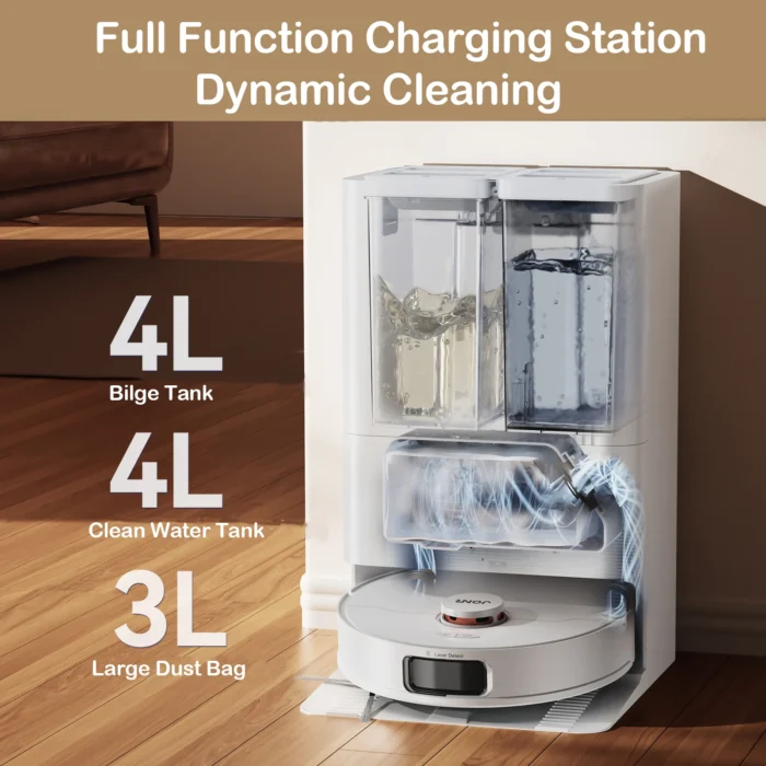 - Automaattinen Likaveden Tyhjennys: Tämä robotti-imuri erottuu markkinoilla sen kyvyllä kerätä likavesi ja tyhjentää se automaattisesti. Tämä ominaisuus säästää aikaa ja vaivaa, sillä sinun ei tarvitse manuaalisesti tyhjentää säiliötä.