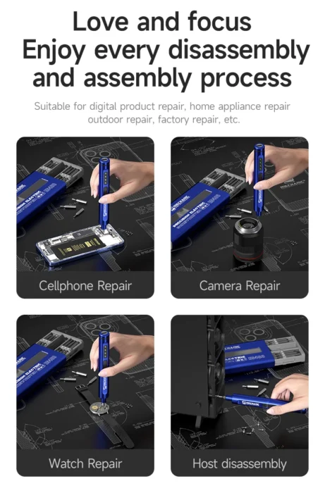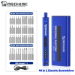 Tutustu MECHANIC ES480 48-in-1 sähköiseen monitoimitarkkuusruuvimeisselisarjaan, joka on suunniteltu erityisesti mobiililaitteiden, tietokoneiden ja kameroiden huoltoon ja korjaukseen. Tämä kattava työkalusarja sisältää 48 erilaista päätä, jotka sopivat lähes kaikkiin elektronisten laitteiden korjaustöissä kohdattaviin ruuvityyppeihin.