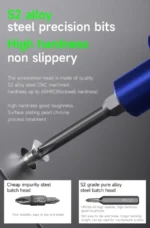 – Monipuolisuus: Sarja sisältää 48 vaihdettavaa bittiä, mukaan lukien Phillips, Flathead, Torx, Hex ja monet muut, tehden siitä täydellisen valinnan monenlaisiin korjaustöihin.
