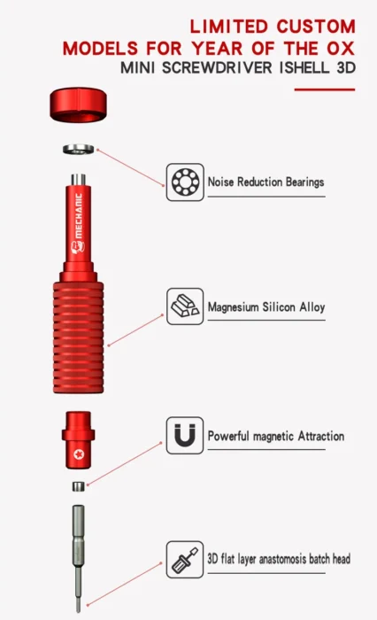 MECHANIC iShell 3D Tarkkuusruuvimeisselisarja on suunniteltu erityisesti iPhone- ja Samsung-laitteiden korjauksiin. Tämä tarkkuustyökalusarja sisältää magneettisia, liukumattomia kärkiä, jotka takaavat optimaalisen pidon ja tarkkuuden pienimmissäkin korjaustehtävissä. Ruuvimeisselit on valmistettu korkealaatuisesta materiaalista, mikä takaa niiden kestävyyden ja pitkän käyttöiän.