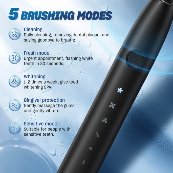 Tehosta päivittäistä suuhygieniaasi tällä innovatiivisella sähköhammasharjalla, joka on suunniteltu tarjoamaan ylivoimainen puhdistusteho ja käyttömukavuus. Tämä USB-ladattava sähköhammasharja hyödyntää edistyksellistä ultraääniteknologiaa, joka puhdistaa hampaat tehokkaasti ja hellävaraisesti, poistaen plakin ja pinttymät vaikeapääsyisistäkin paikoista.