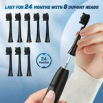 Tuotteen mukana tulee kahdeksan vaihtopäätä, jotka takaavat pitkäaikaisen käytön ja mahdollistavat henkilökohtaisen puhdistuskokemuksen. Vaihtopäiden ansiosta voit vaihtaa harjaspään säännöllisesti, mikä ylläpitää hygienian tasoa ja tehostaa puhdistusta.