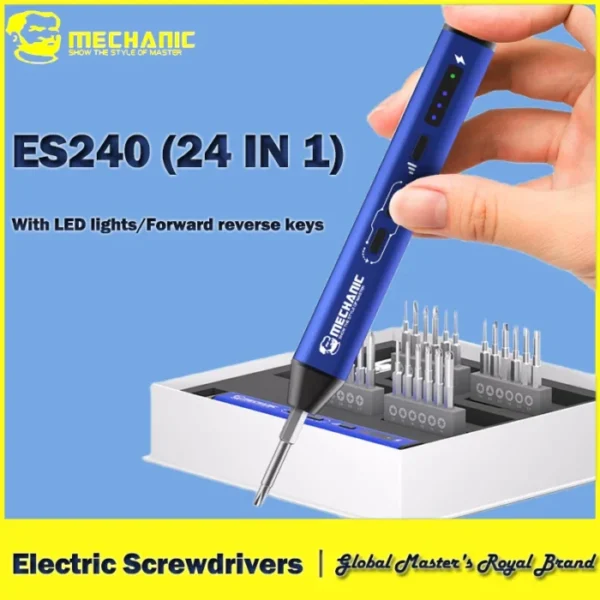 MECHANIC ES240 24-in-1 sähköruuvimeisselisarja on välttämätön työkalu jokaiselle elektroniikan korjauksesta innostuneelle tai ammattilaiselle. Se ei ainoastaan tee työstäsi nopeampaa ja helpompaa, vaan varmistaa myös, että korjauksesi sujuvat mahdollisimman sujuvasti ja turvallisesti.