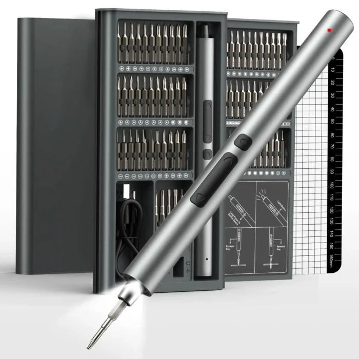 Tämä monipuolinen 75-in-1 tarkkuussähköruuvimeisselisarja on suunniteltu vastaamaan kaikkia elektroniikan korjaustarpeitasi. Sarja sisältää 71 erilaista magneettista kärkeä, mukaan lukien Phillips- ja Torx-kärjet, jotka takaavat, että sinulla on aina oikea työkalu käsillä. Kärjet ovat valmistettu korkealaatuisesta S2-teräksestä, joka on kestävä ja pitkäikäinen.