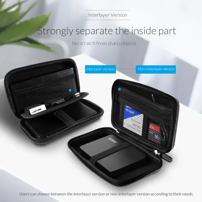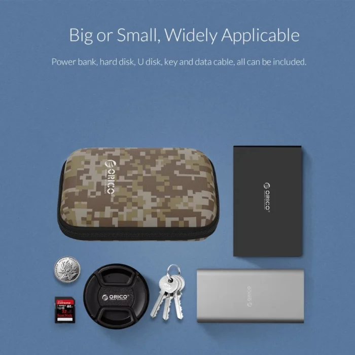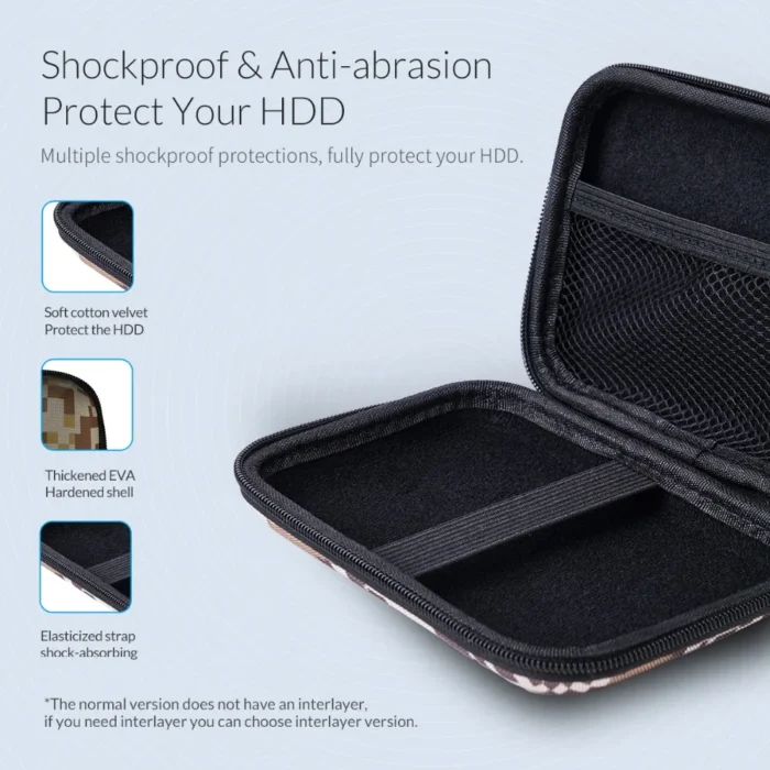 ORICO 2,5 tuuman HDD/SSD suojakotelo on suunniteltu erityisesti virtapankkien, HDD- ja SSD-kiintolevyjen suojaamiseen. Tämä kannettava suojakotelo on saatavilla tyylikkäissä kamouflage-harmaa, sininen ja musta väreissä, jotka eivät ainoastaan suojaa laitteitasi, vaan näyttävät hyvältä missä tahansa.
