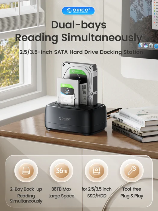 ORICO kahden levyn HDD/SSD-telakointiasema, USB 3.0