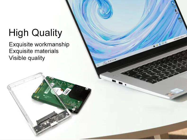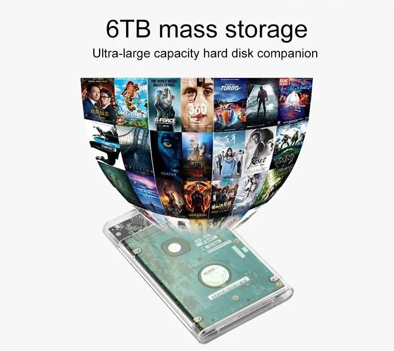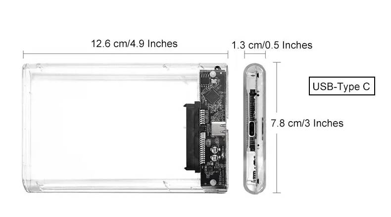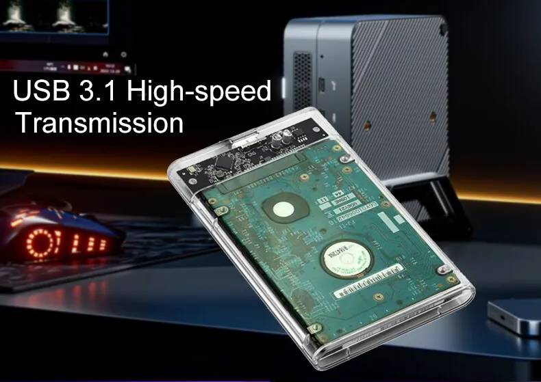 USB 3.0 SATA ulkoinen kovalevyn kotelo Tyyppi-C 2.5″ HDD/SSD tarjoaa nopean ja kätevän tavan säilyttää ja suojata kovalevyäsi. Tämä kovalevykotelo on varustettu USB 3.0 -liitännällä, joka mahdollistaa korkean nopeuden tiedonsiirron. Sen läpinäkyvä design mahdollistaa kovalevyn tai SSD:n esittelyn samalla suojaten sitä pölyltä ja naarmuilta.