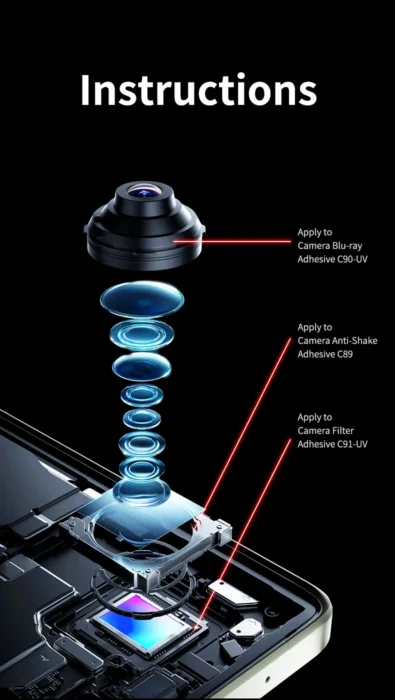 MECHANIC UV-liimasarja (C89/C90/C91) kamerakorjaukseen tarjoaa ammattimaisen ratkaisun kameroiden optisten osien, kuten linssien ja suotimien, korjaamiseen ja suojaamiseen. Tämä sarja sisältää kolme erikoisliimaa: C89 Optinen Vakautusliima, C90-UV Sininen Valoliima ja C91-UV Suodatinliima, jotka kaikki on suunniteltu parantamaan ja pidentämään kameran suorituskykyä ja käyttöikää.