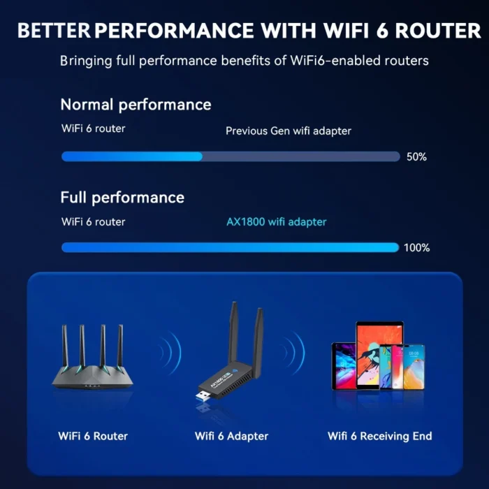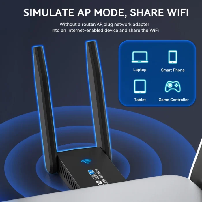 Koe ennennäkemättömän nopea internet-yhteys uudella 1300/1800Mbps Dual-Band USB 3.0 WiFi-sovittimella, joka tukee sekä 5G että 6G -teknologiaa. Tämä tehokas laite on suunniteltu tarjoamaan erinomaista nopeutta ja vakautta, jotka ovat välttämättömiä nykypäivän digitaalisessa ympäristössä.