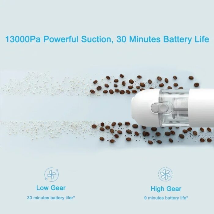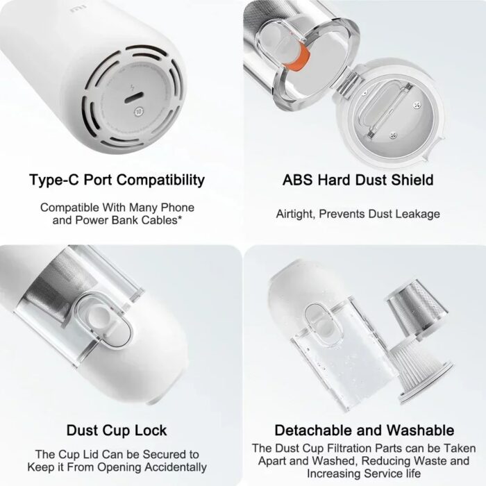 Xiaomi Mijia kannettava mini auton pölynimuri on tehokas johdoton siivouslaite, joka tarjoaa erinomaisen siivouskokemuksen niin kotona kuin autossakin. Tämä kompakti ja kätevä pölynimuri on varustettu 13000 Pa:n syklonisella suodatuksella, joka takaa voimakkaan ja tehokkaan puhdistuksen kaikilla pinnoilla.