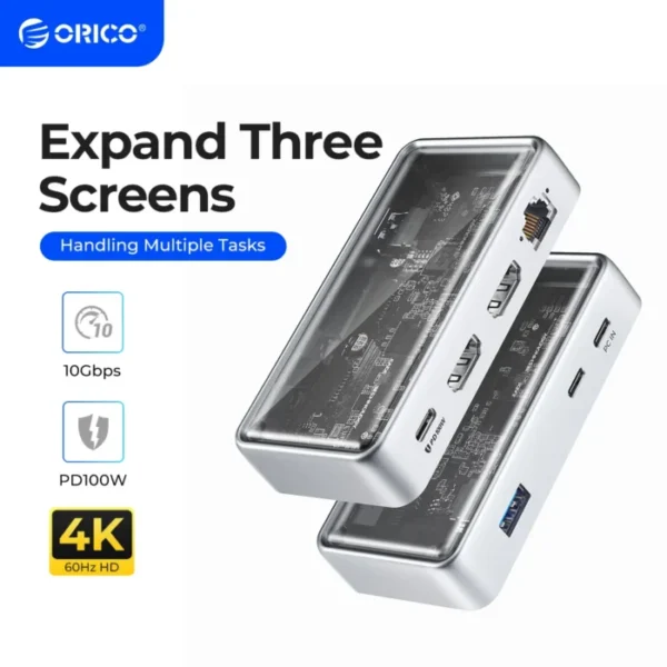 Tuote on yhteensopiva useimpien USB-C-laitteiden kanssa, kuten MacBook Pro, HP, Dell ja muut suositut merkit, tarjoten monipuolisen ratkaisun erilaisiin liitäntä- ja laajennustarpeisiin. ORICO-telakointiasema ei ainoastaan paranna tuottavuuttasi, vaan myös parantaa laitteidesi käyttökokemusta, olitpa toimistossa tai liikkeellä.