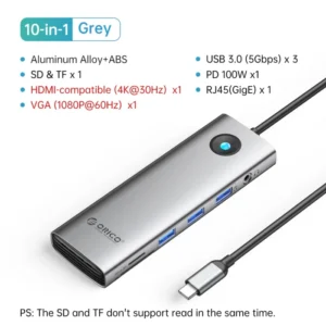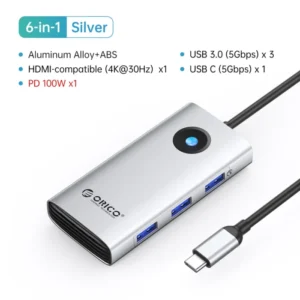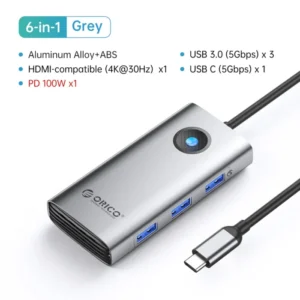 Harmaa 6-in-1, 30 Hz, PD 100W
